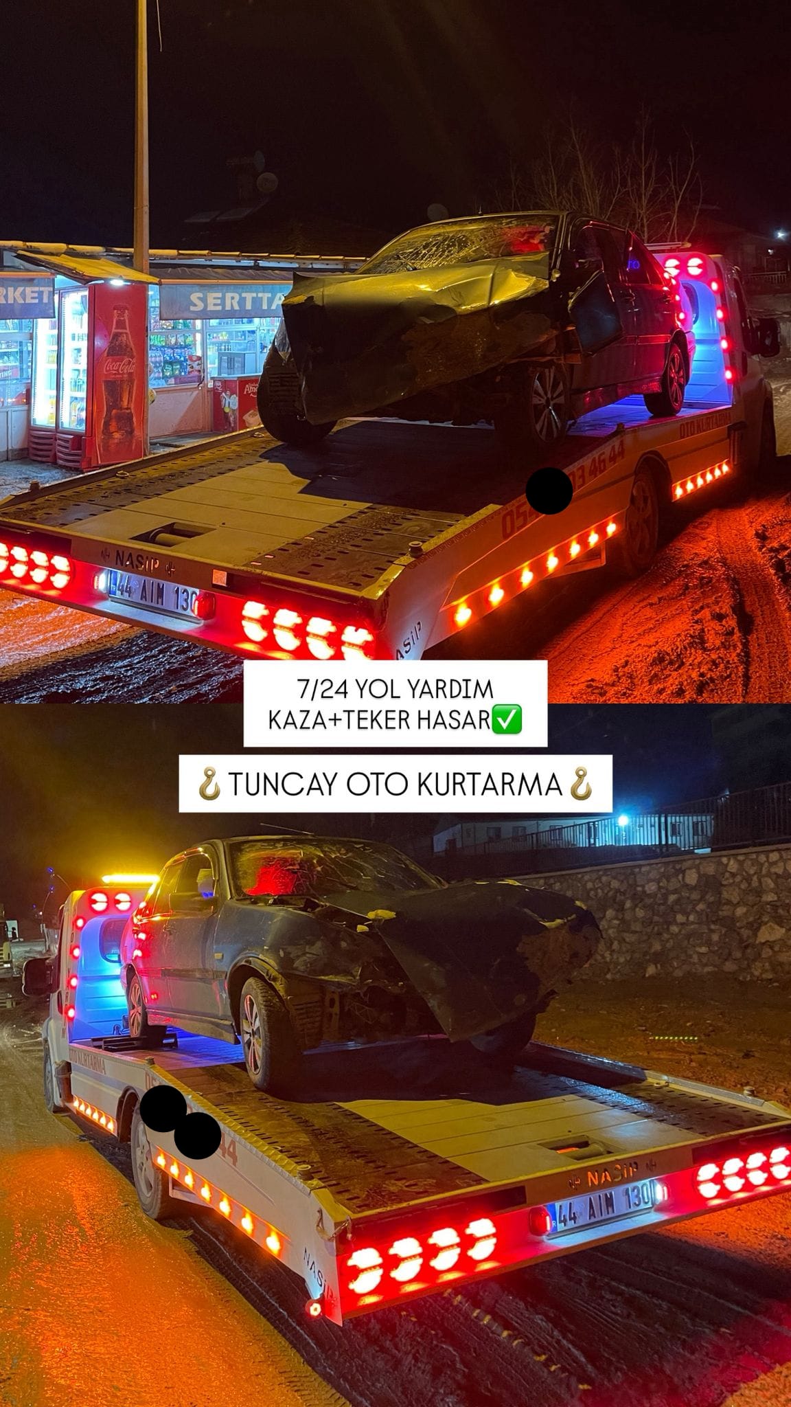 Tuncay Oto Kurtarma, 7/24 saatleri arasında hizmet vermektedir.